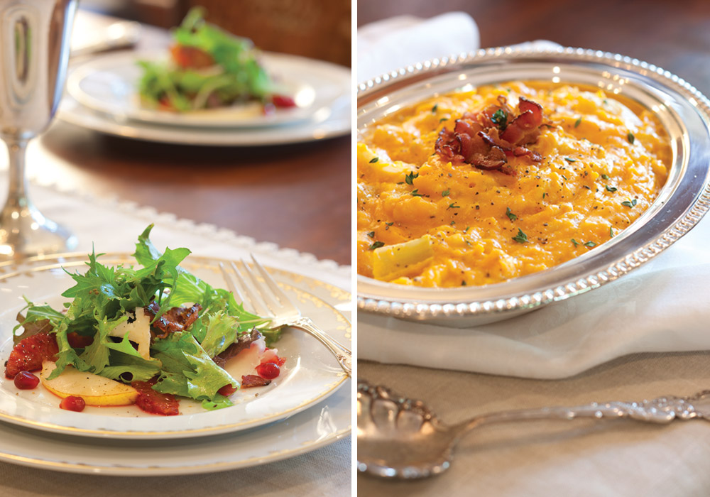 - In a large bowl, combine lettuces, frisée, pear, pomegranate arils, orange segments, pecans, and pancetta. Drizzle with Pear Vinaigrette just before serving.