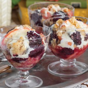 Bringing together tastes of late summer and early fall, Apple and Blackberry Crisp greets the first brisk day of the coming season with a delicious cobbler. The traditional crumble boasts a bubbly fruit compote of sweet-tart Pink Lady apples and plump, juicy berries with a golden-brown topping of brown sugar and oats. Served warm, the baked delight reaches perfection with the contrast of a chilled crème anglaise, a rich custard sauce infused with vanilla bean and poured over the dessert for a mouthwatering finish.