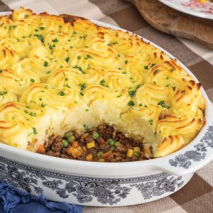 Let raindrops splatter the windows; inside, all is well with our nourishing Cottage Pie, which shelters a hearty beef filling beneath creamy mashed Yukon Gold potatoes.
