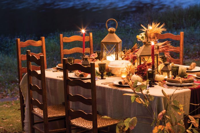 As twilight falls, gather guests for an alfresco celebration of harvest bounty. Let the fullness of the day’s challenges and responsibilities gently fade as darkness descends, drawing loved ones nearer as the radiance of genuine deep affection grows brighter.