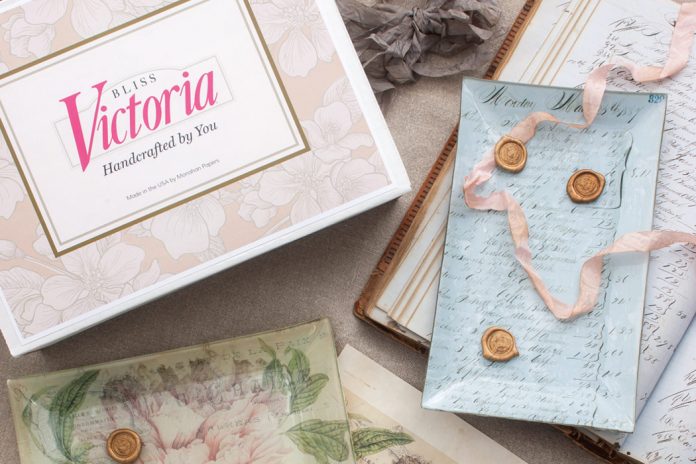 In collaboration with Victoria magazine, artisan Stephanie Monahan brings the pleasure of crafting to a limited-edition découpage kit, available in our online shop. This talented entrepreneur, who welcomed us into her cozy atelier for our January/February 2018 issue, masterfully incorporates antique finds into stationery and giftware for her company Monahan Papers.