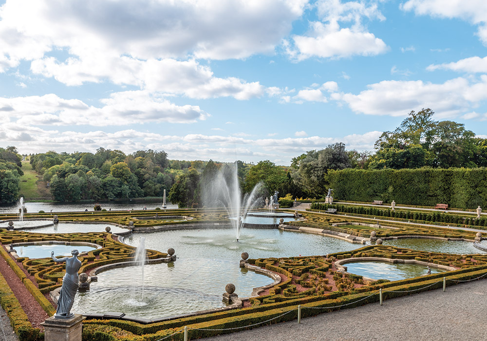 Architect Sir John Vanbrugh began the project, which he designed in flamboyant and awe-inspiring Baroque style. Masses of honey-hued stone rose up with pride from the brilliantly verdant Woodstock landscape, and low towers in each corner were crowned with vast belvederes to admire the view. Though the park and gardens were designed alongside the house, they were later improved by Lancelot “Capability” Brown during the time of the 4th duke. The River Glyme, which meandered through the property, was dammed, resulting in two man-made lakes separated by a breathtaking bridge. This scenery, which also includes water terraces and a grand Italian garden, evokes admiration for the glory of Blenheim—glory which, of course, is most evident in the palace itself.