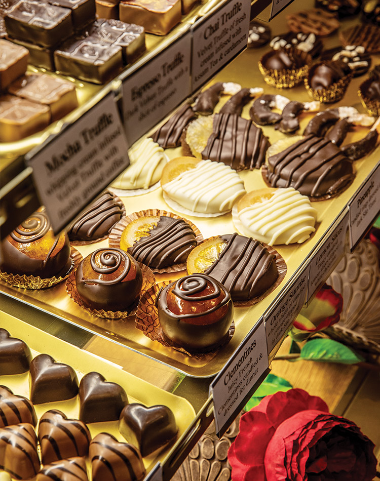 Trained as a child with culinary talented parents and later under master chocolatiers of French, Belgian, and Swiss schools, Iain melds renowned tutelage with a naturally gifted palate to cultivate a style all his own. “It’s good fortune that people like what I like,” Iain says. Of his creations, the velvet truffle stands out as a personal and customer favorite. A soft ganache covering encircles sumptuous fillings, all free of additives or preservatives to generate the purest product. Iain maintains the three-day method of production is well worth the effort, as the result nears magic, garnering dozens of awards and satisfied grins from every sweet-toothed guest dining at the shop.