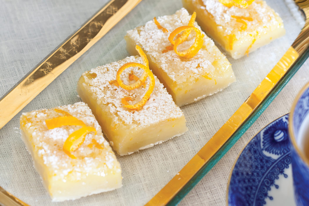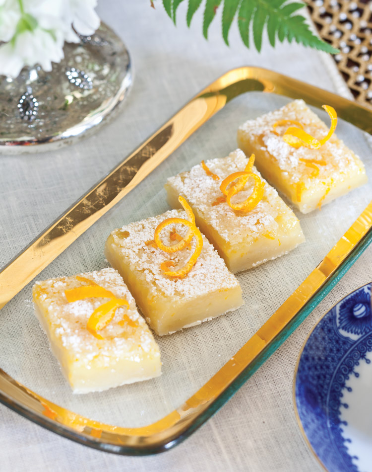 I especially love the recipe for Orange Bars as the colours of Blue and Orange are direct opposites – bringing attention to each other as they sit on the table waiting for guests to tuck in.