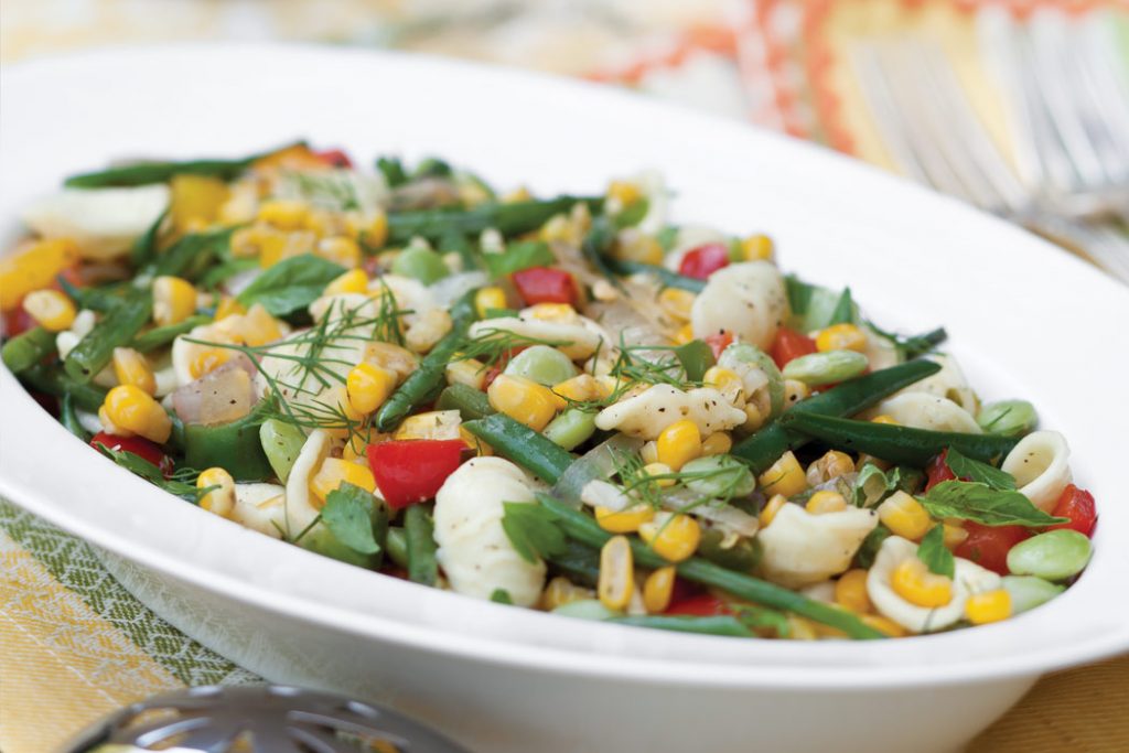 Take along the best of the season’s bountiful garden offerings with a savory side of Summer Succotash with Herbed Vinaigrette. Make the succotash and vinaigrette ahead of time, and add the dressing just before serving.