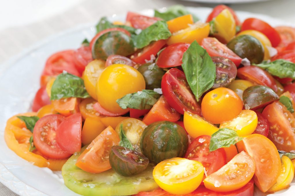 Nothing says summer quite like the fresh-from-the-vine goodness of Mixed Heirloom Tomato Salad. Our medley of sweet, bite-size orbs definitely speaks the language of the season. A light dressing of olive oil and lemon juice brings out the flavor in every luscious bite.