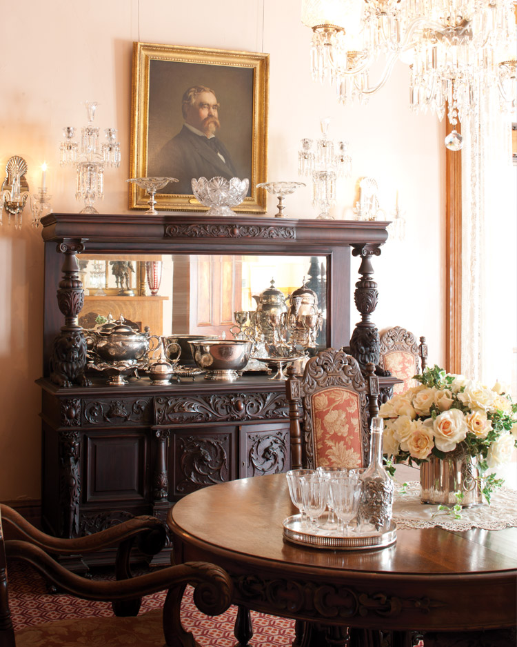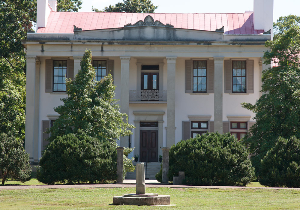 The splendid furnishings that grace the rooms of Belle Meade Plantation, once the country’s largest thoroughbred farm, tell the story of the opulent lifestyle the John Harding family enjoyed throughout the nineteenth century. The serene façade of the Greek-Revival antebellum mansion belies the storm of battle that took place in the front yard during the Civil War. Restoration efforts based on Harding family photographs and paint analysis resulted in pink paint for the dining room walls, as well as furniture placement and carpet patterns that replicate the original décor.