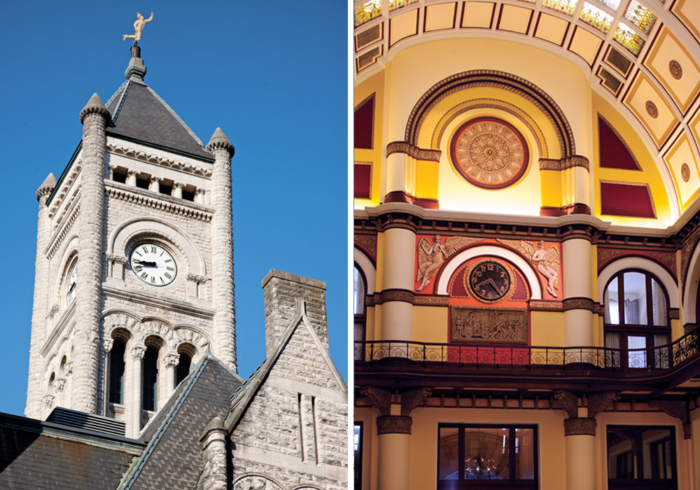 Once Nashville’s gateway for rail travel, Union Station is now a prestigious hotel and a National Historic Landmark. With its barrel-vaulted lobby ceiling of gold-leaf medallions and original one-hundred-year-old stained glass, the nineteenth-century former railroad station honors the legacy of passenger trains while providing stellar accommodations for visitors. A soaring tower of Kentucky limestone dominates the skyline above the Romanesque building.
