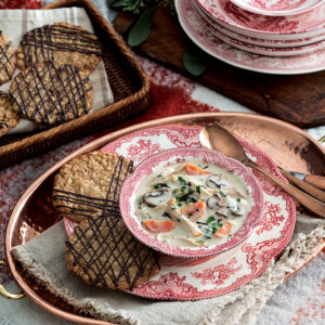 Chicken and Wild Rice Soup with Oatmeal Toffee Lace Cookie