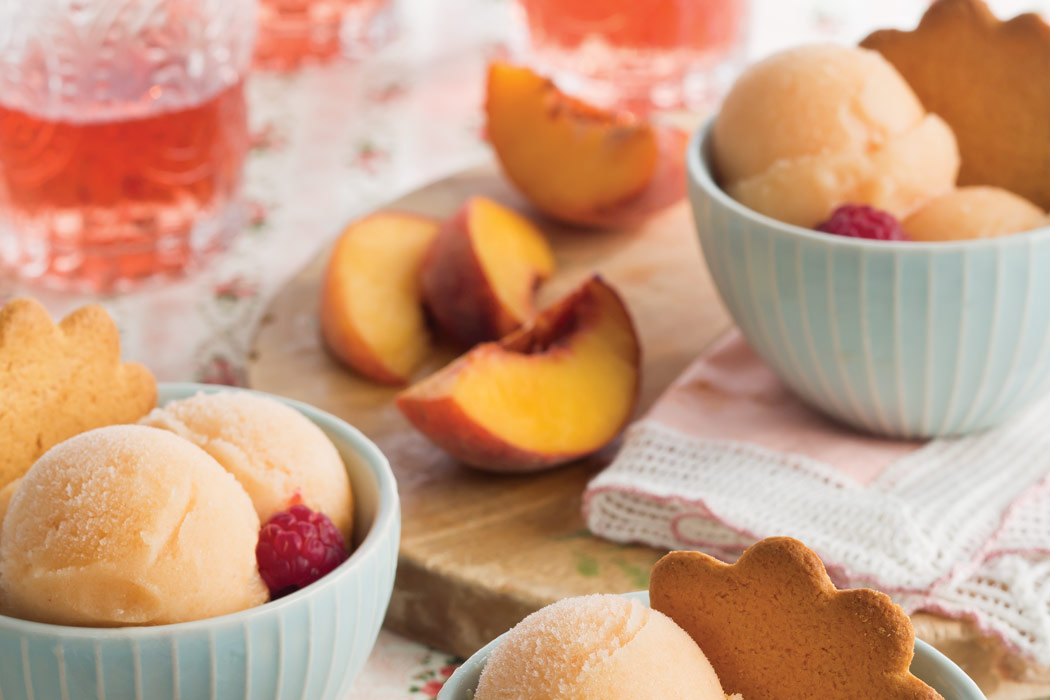 As inviting as a cool summer breeze, mellow and fragrant Peach-Rosé Sorbet epitomizes the season’s simplest pleasures.