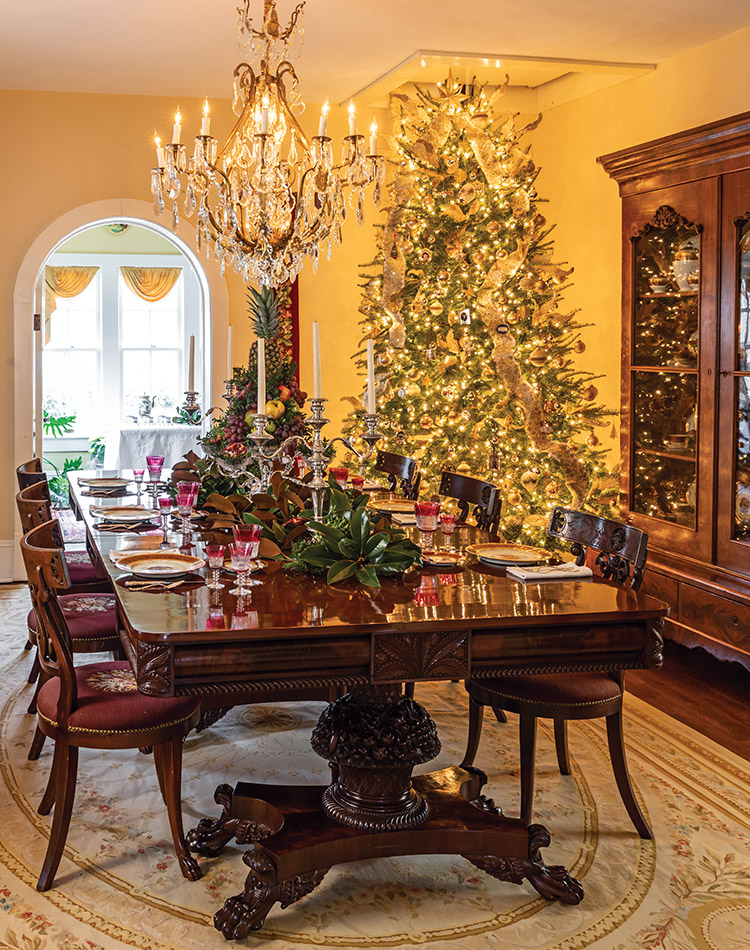 Christmastime offers the perfect opportunity for the owners of this Georgian charmer to highlight both antiques and architecture with radiant holiday decorations.