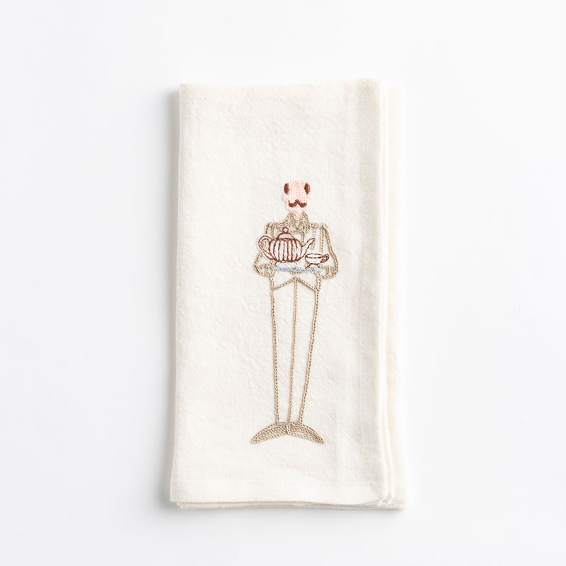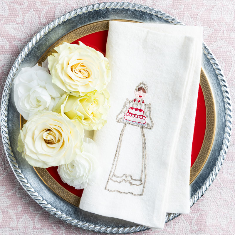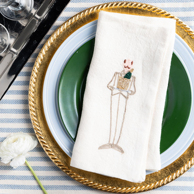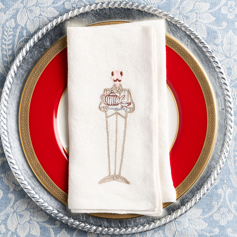 Add charm and individuality to your table with Busatti’s embroidered maid and butler napkin design. Made from high-quality 100% linen, this napkin combines tradition and craftsmanship. The embroidered design is perfect for special occasions and will bring an artful touch to any setting. For more than 180 years, the Busatti family has been weaving fine linens in the heart of Tuscany, and we’re honored to share this exquisite old-world craftsmanship with you.