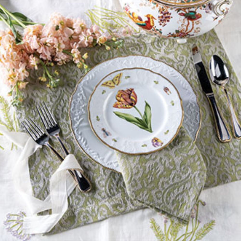 Tuscany-based textiles brand Busatti boasts timeless design and impeccable quality, as well as an impressive family story woven over eight generations. This array of linens, selected by our senior director of design, Melissa Sturdivant Smith, evokes all the finery of a Mediterranean holiday. The Costantinopoli Collection features shades of cream and white dancing atop other offerings of green, such as a napkin and placemat.