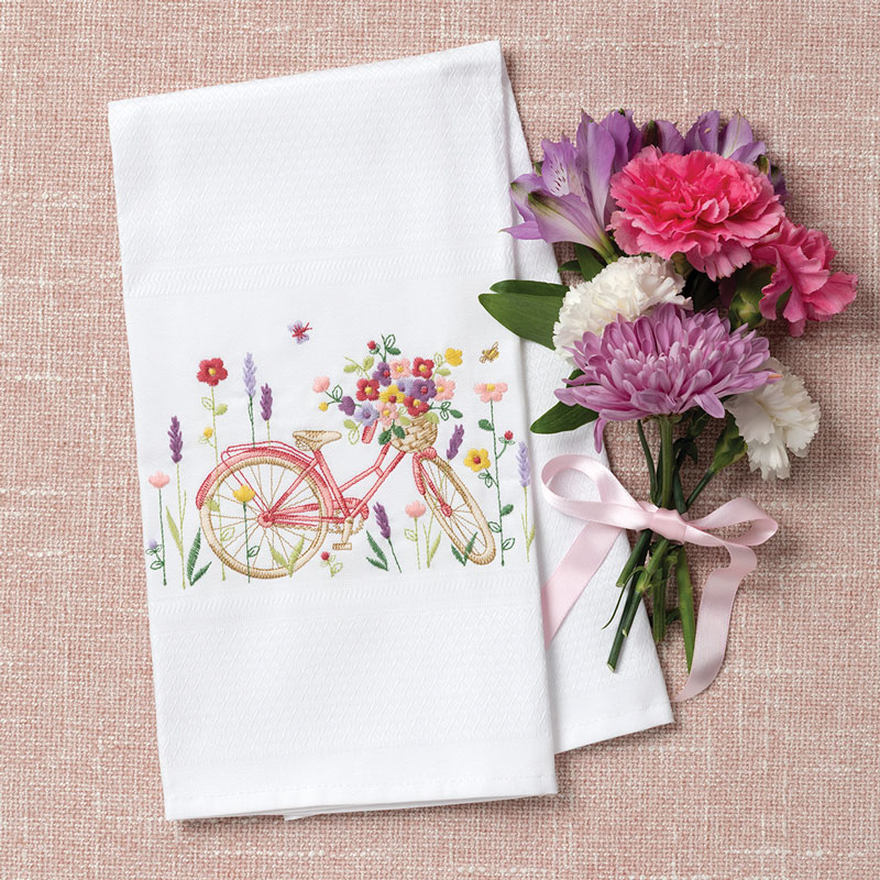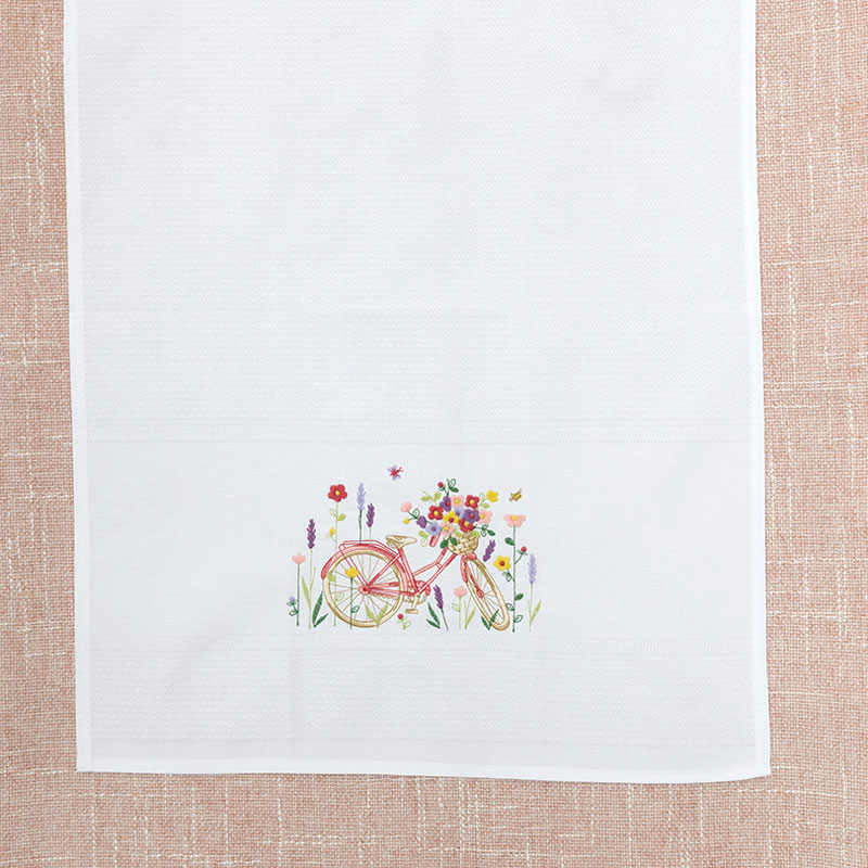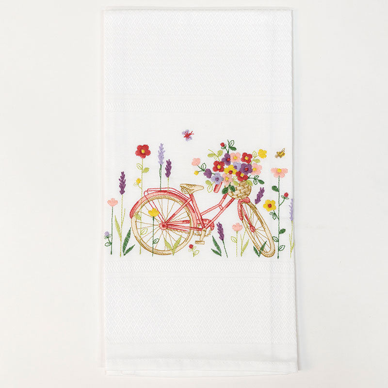 Transform your kitchen with this charming tea towel from Mierco Linens featuring an enchanting vintage bicycle scene surrounded by delicate wildflowers and lavender sprigs. The premium woven cotton patterned construction offers superior absorbency in a generous size, while the design showcases artful hand-detailed stitching in soft purples, garden greens, and warm accent colors. Perfect for farmhouse or French country décor, the towel combines functional quality with European-inspired charm, making it ideal for kitchen use or as a thoughtful gift for those who appreciate fine textiles with vintage botanical appeal.