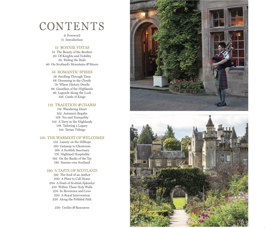 Turn the page to “Tradition & Charm” to meet time-honored tailoring establishments, indulge in gourmet chocolates, and take afternoon tea in the quiet surroundings of a library cum salon in the heart of Edinburgh. In “The Warmest of Welcomes,” we share our favorite places to stay, from a hilltop haven in the Highlands to a dreamy castle in rural Scotland, complete with turrets—and views that go on forever. In our final chapter, we offer “A Taste of Scotland,” where we wrap up our heartfelt tribute with visits to Sit Walter Scott’s inspiring home, the Gothic-style Saint Giles Cathedral with its Thistle Chapel, Dumfries House, and so much more.