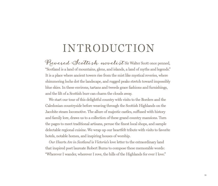 Our Hearts Are in Scotland is Victoria’s love letter to this extraordinary land, a magical place that inspired beloved Scottish poet Robert Burns to compose these memorable words: “Wherever I wander, wherever I rove, the hills of the Highlands for ever I love.”