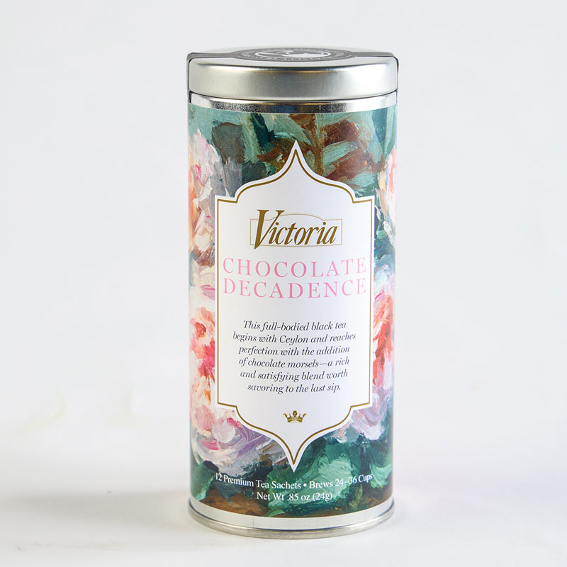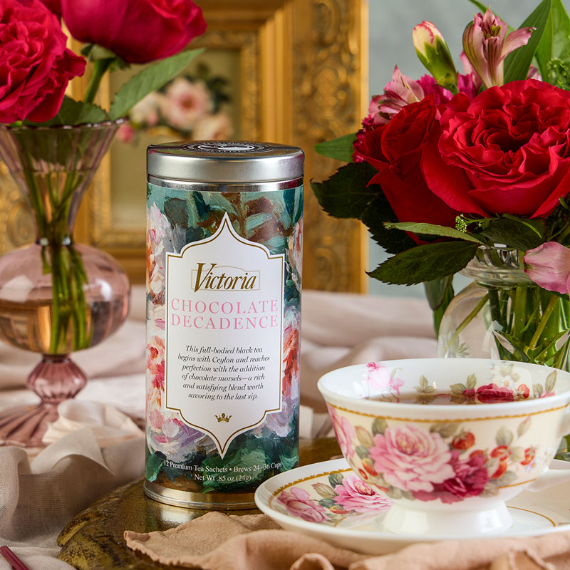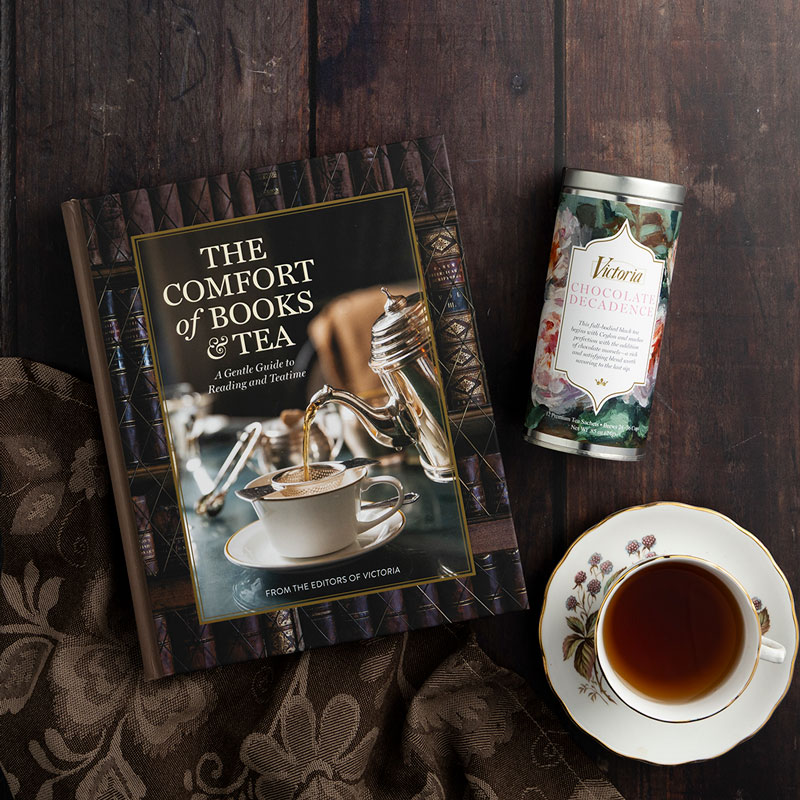 Settle into the pleasure of a quiet afternoon with this soul-soothing pairing of The Comfort of Books & Tea—a beautifully curated keepsake volume from the editors of Victoria filled with storybook settings, teatime recipes, literary travel, and seasonal reading recommendations—alongside Victoria’s own Chocolate Decadence Signature Tea, a full-bodied Ceylon black tea perfected with rich chocolate morsels and presented in a charming reusable tin with 12 premium sachets, plus a unique VINTAGE tea cup and saucer, making every chapter even more indulgent.