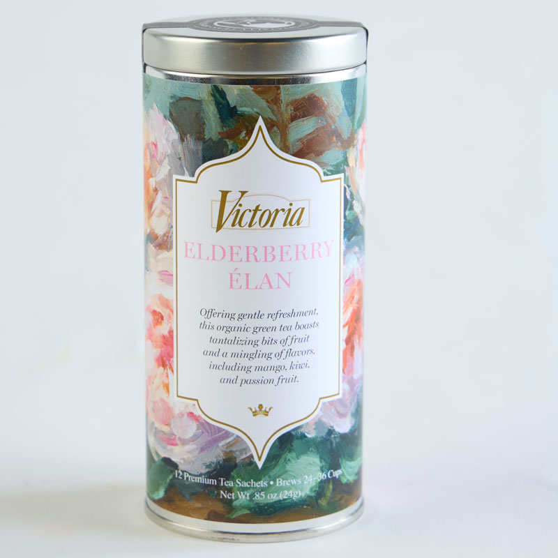 In this limited-time bundle, collect a unique patterned vintage teacup and saucer, along with a floral blend of our signature tea. Presented in a charmingly adorned reusable tin canister, your choice of either our Orange Almond, Elderberry Elan or Daily Renewal specialty tea will add a seasonal appeal to your moment of bliss, while the teacup and saucer will bring a sense of both surprise and delight to your taking of afternoon tea.