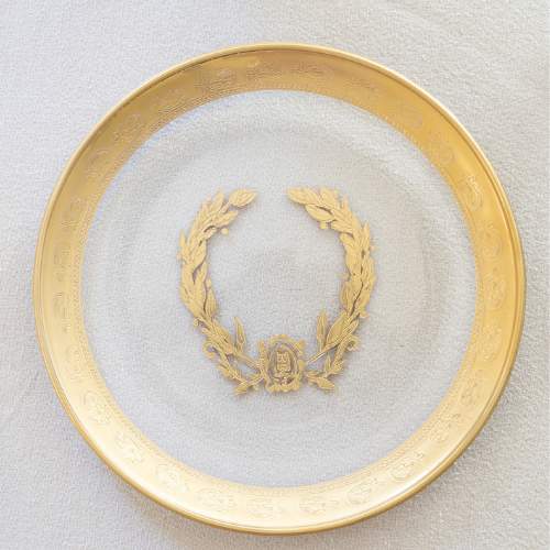 Elevate tablescapes for any occasion with our hand-etched glass salad plate, crafted exclusively for Victoria by Arte Italica. Each plate is adorned with a golden laurel wreath painted with luxurious flourishes of 24-karat gold. A stunning backdrop for showcasing holiday menus, teatime specialties, or for elevating everyday fare, these delicate plates blend timeless craftsmanship with an air of opulent sophistication.