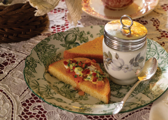Lift the lids of our antique egg coddlers to discover a delectable, brunch-perfect surprise: Ricotta-Spinach Coddled Eggs. Sheltered within the walls of these culinary cocoons, the entrée cooks gently in simmering water. When one’s spoon pierces the soft texture of a set egg white, lightly runny golden yolk mingles with Italian cheese, herbs, and pancetta for a satisfying bite that is perfect with toast.