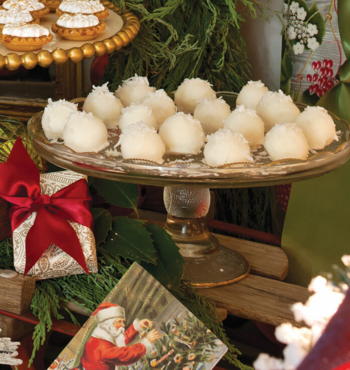 Sparkling confections perfect to serve at a holiday party or send home with guests, Snowflake Truffles boast delectable coconut-flavored filling enveloped in a crisp vanilla shell.