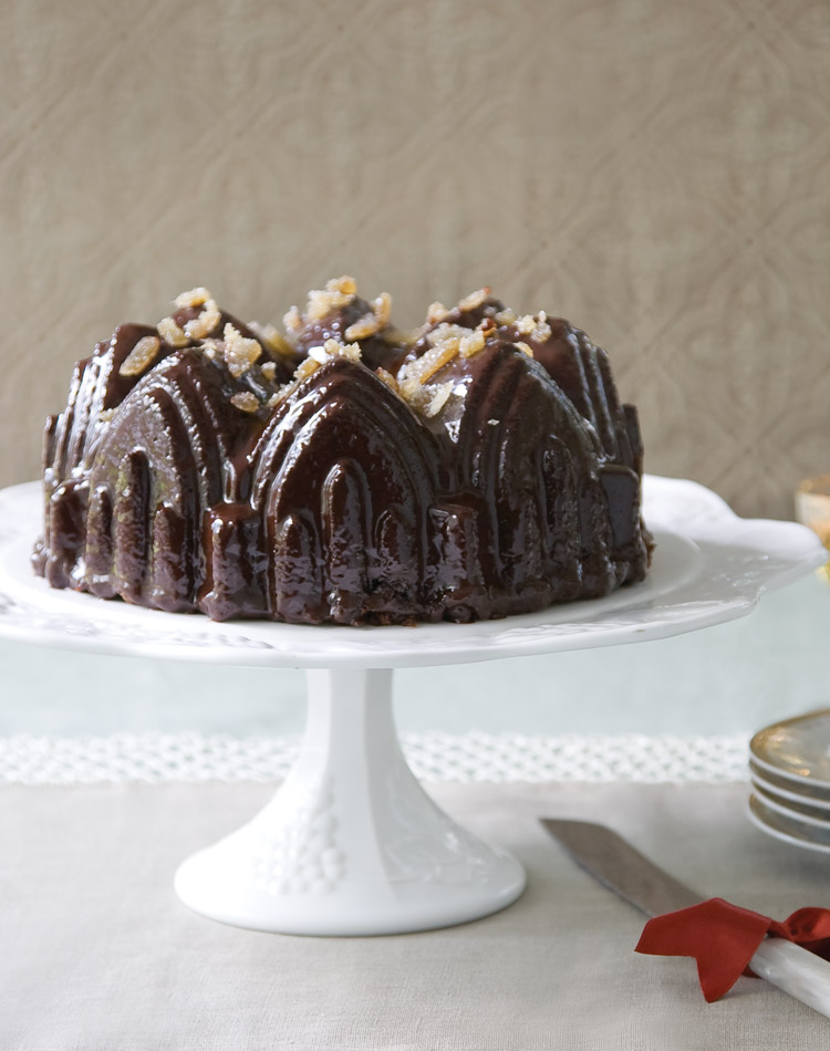 Among the most classic of holiday desserts is this moist, dark cake suffused with the warmth of cinnamon, nutmeg, ginger, cloves, and allspice. Gingerbread has its roots in Europe, and it is most famously associated with Germany, where each home has its own recipe, varying from very spicy to sugary sweet. Ours includes a glossy coating of dark chocolate ganache, which delicately balances the piquancy of the spices inside.