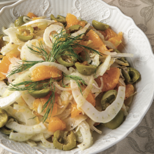 - In a medium bowl, combine vinegar, olive oil, shallot, salt, and pepper. Fold in tangerines, fennel, and olives. Top with reserved fennel fronds and serve.