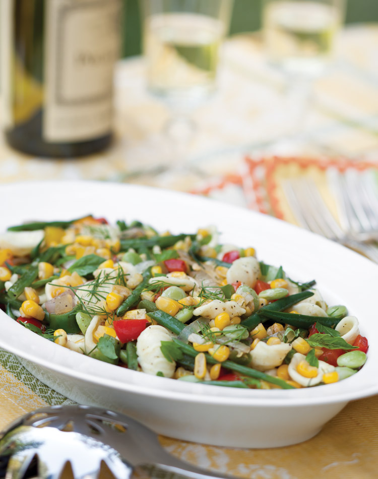 A pleasant complement to chunky Summer Succotash with Herbed Vinaigrette, orecchiette offers a soft and chewy consistency based on its unique earlike shape. Thin in the center and thick around the edges, this regional staple from southern Italy typically contains no eggs and is traditional made from semolina flour.