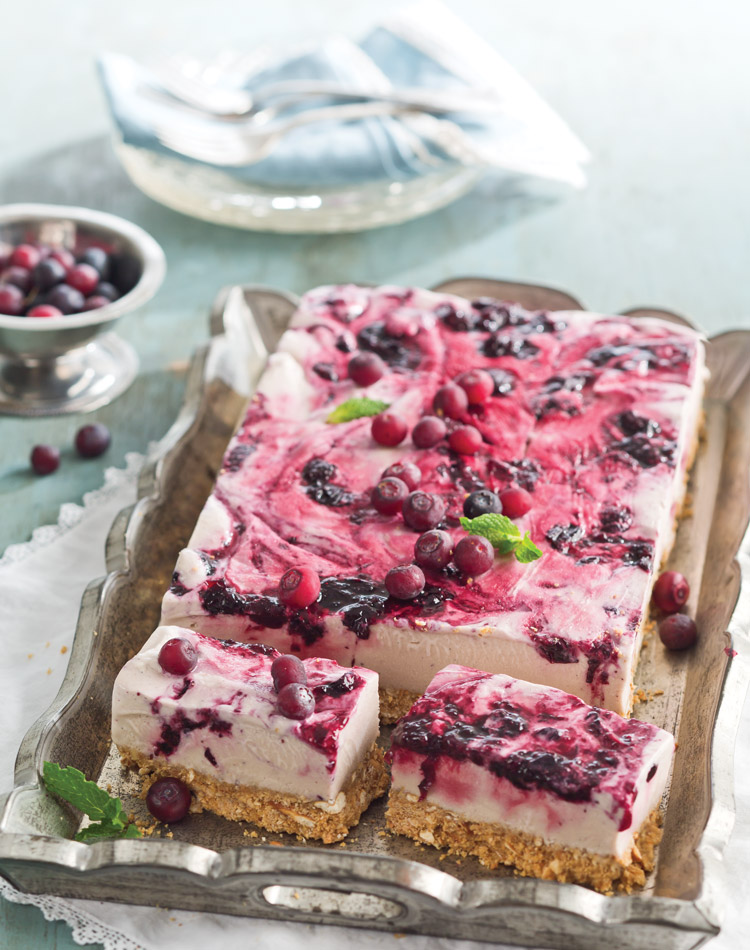 Bursting with luscious fruit, Blueberry Ice-Cream Bars enchant—each velvety bite gives way to the gratifying finish of a crisp pretzel-almond crust.