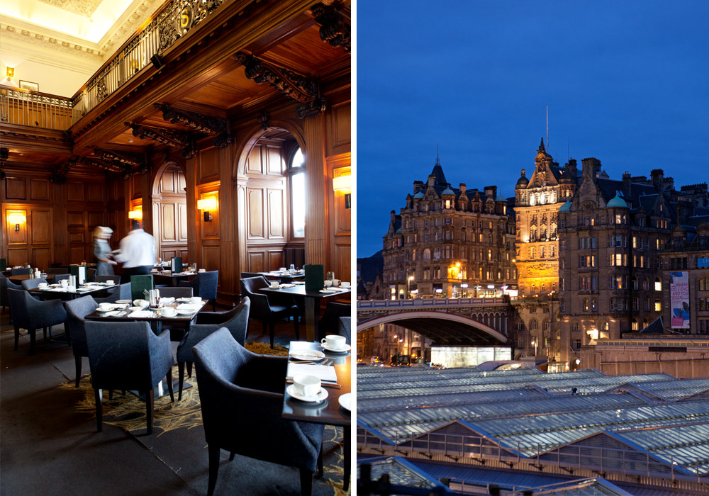Housed in an elegant structure once occupied by newspaper offices, the Scotsman Hotel is the very definition of luxury. Many of the architectural details are intact, such as the marble staircase, paneled walls, and turrets. The old printing room is now a relaxing spa, and the former carrier-pigeon loft was transformed into a penthouse with remarkable views of Edinburgh Castle.