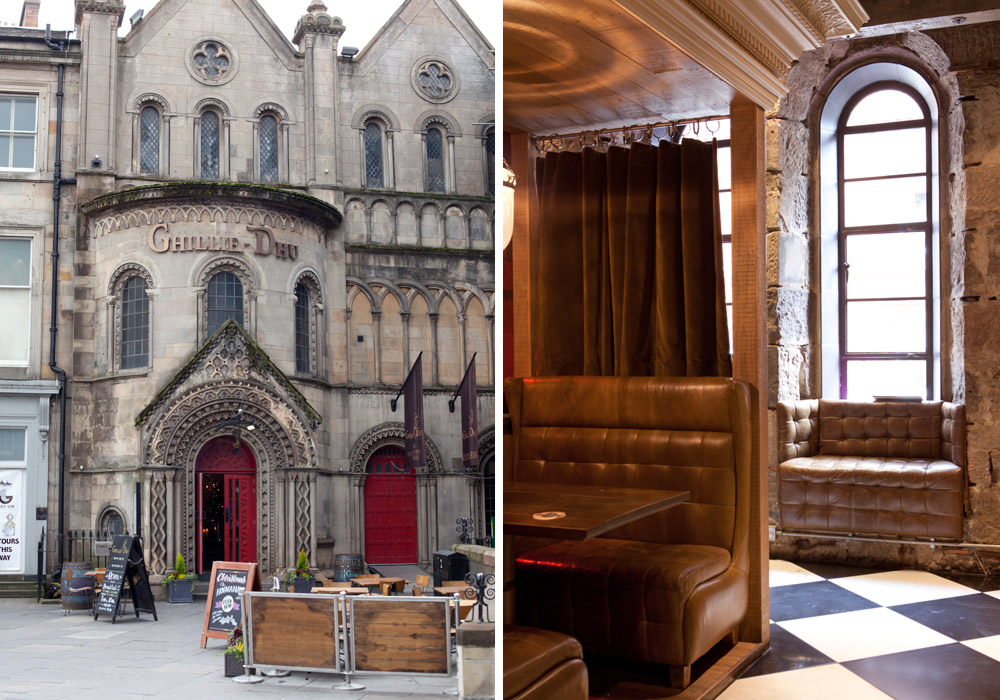 Named for the mythical fairy that lived in the Northwest Highlands of Scotland, Ghillie Dhu is a restaurant and an entertainment venue on Rutland Street, near Old Town. It is well known for its spectacular Georgian-style hall—complete with soaring, vaulted ceilings. This friendly gathering spot hosts live-music performances and traditional Scottish ceilidhs, a combination of singing and storytelling.