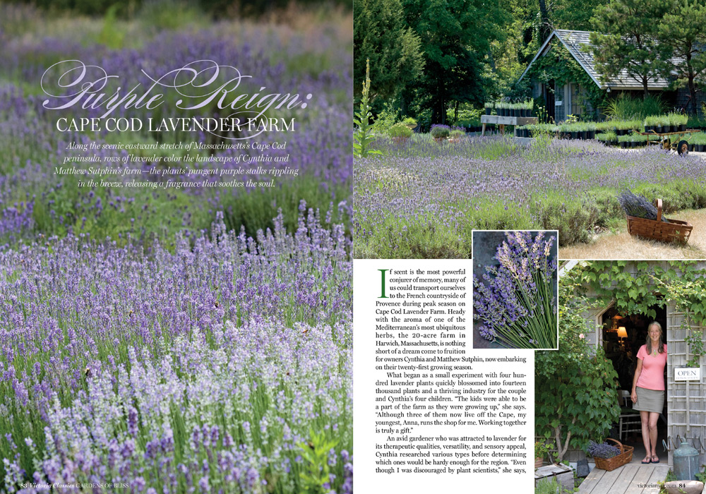 Along the scenic eastward stretch of Massachusetts’s Cape Cod peninsula, rows of lavender color the landscape of Cynthia and Matthew Sutphin’s farm—the plants’ pungent purple stalks rippling in the breeze, releasing a fragrance that soothes the soul.