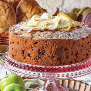- Lightly dust cooled cake with confectioners’ sugar, if desired. Top with baked apples and serve with Crème Anglaise.